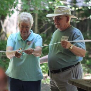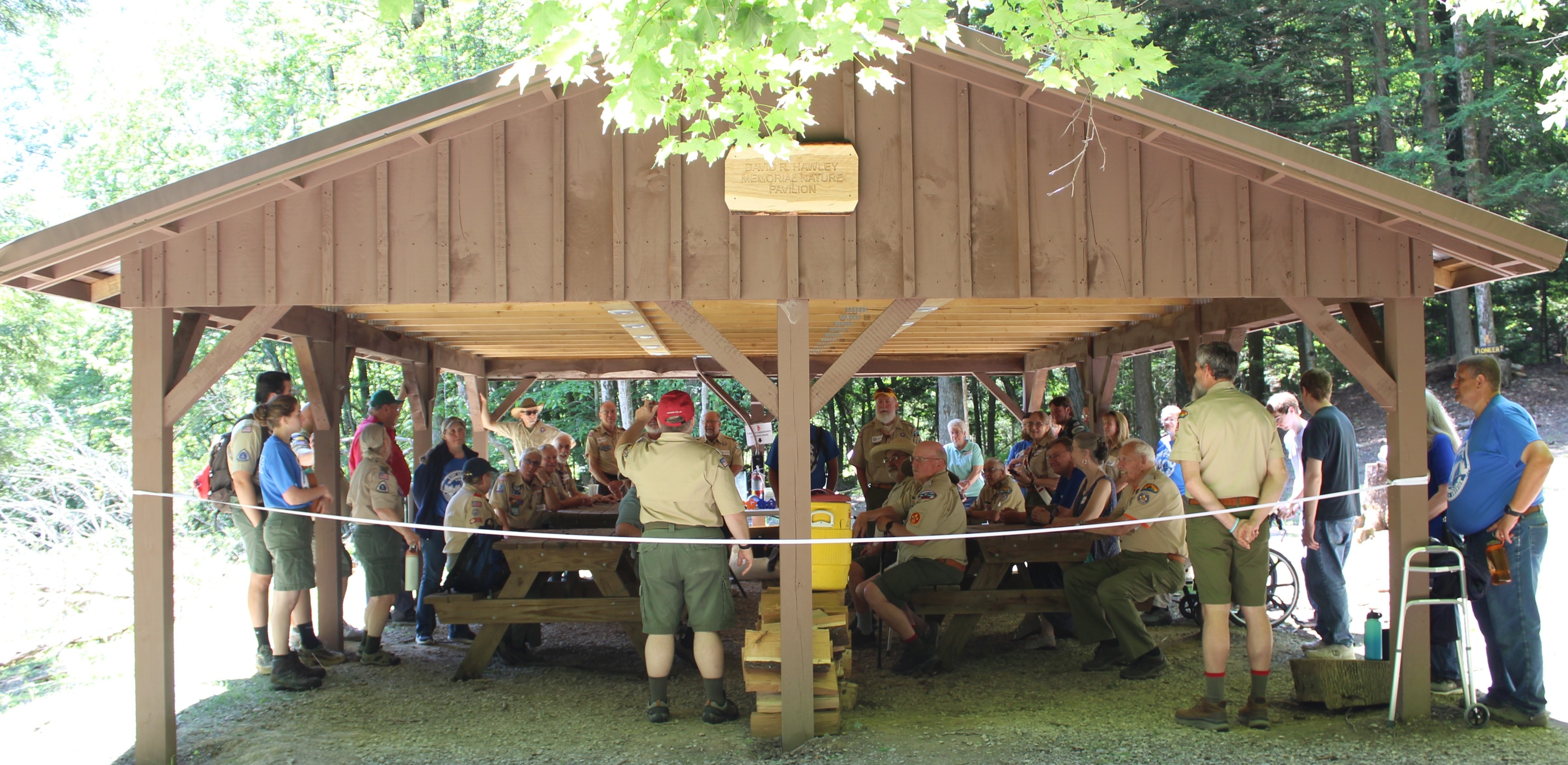 Great Falls Council held a ribbon-cutting ceremony on Saturday, July 19, to reveal the brand-new David Hawley Memorial Nature Pavilion at Camp Sam Wood. The pavilion is one of several upgrades to the camp property over the past year, many of which have been funded through the generous bequest of Mr. Hawley, an Eagle Scout, Scoutmaster, camping chair, and board member since 1985 of the local Scouting America council.